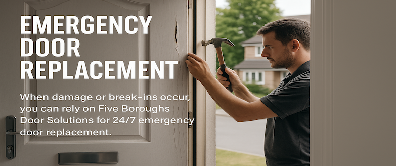 When damage or break-ins occur, you can rely on Five Borough Door Solutions for 24/7 emergency door replacement. Our mobile team arrives quickly, secures the area, removes damaged doors, and installs replacements on-site — keeping your family safe day or night.